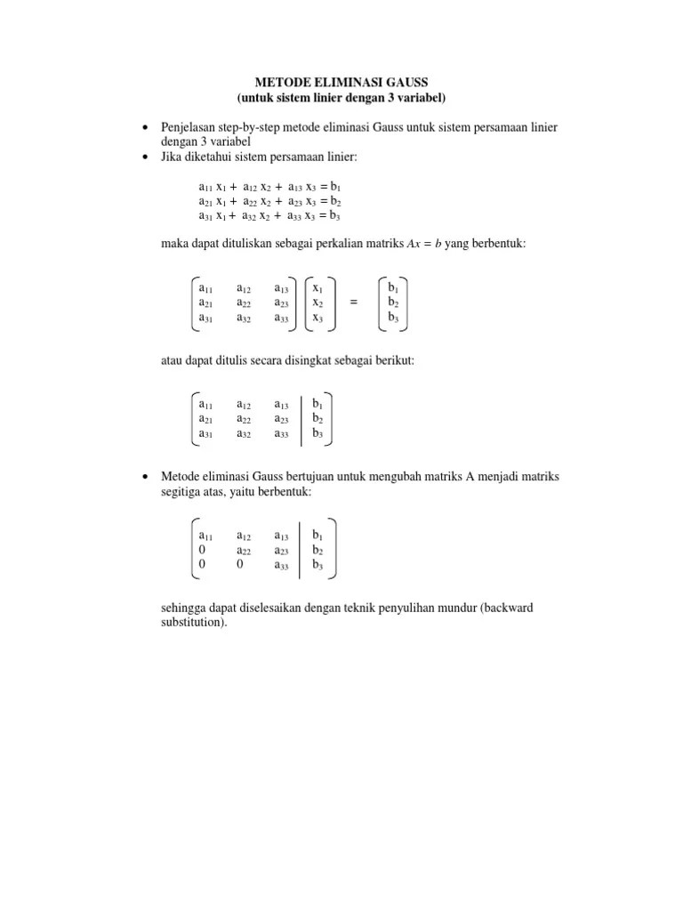 Penyelesaian persamaan linear tiga variabel metode gauss jordan. Contoh eliminasi gauss jordan (1/1). Spl dengan m persamaan dan n variabel. Contoh soal eliminasi dan substitusi 3 variabel kumpulan . Metode eliminasi gauss jordan untuk sistem persamaan linier from id.scribd.com.