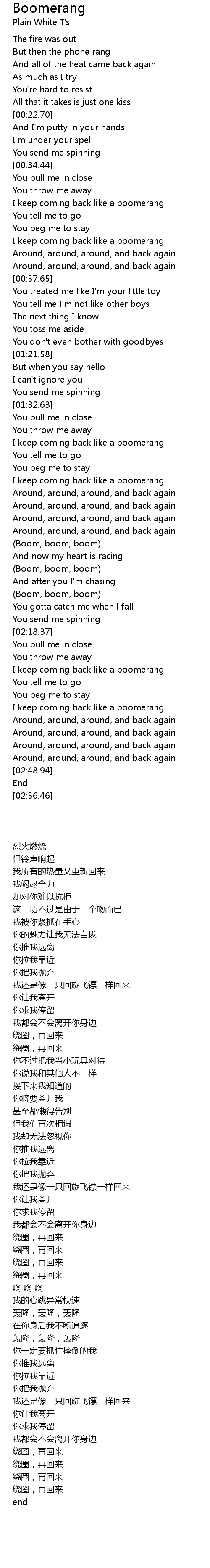 Lyrics for boomerang by dawn richard. Learn every word to your favourite song! Get lyrics of but i keep turning back just like a boomerang song you love. Don't let your bruised and battered soul deny it Love is like a boomerang.
