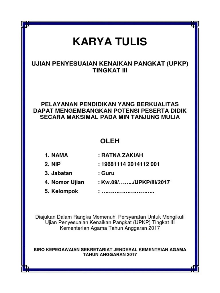 Sistem informasi registrasi ujian meliputi kenaikan pangkat penyesuaian ijazah, kenaikan pangkat peningkatan pendidikan dan kenaikan pangkat ujian dinas. Naskah soal ujian dinas tingkat ii, golongan 111/d yang pelaksanaannya di . Amin saat ini golongan ruang ii/c, pendidikan d3 analis kimia. Peraturan pemerintah nomor 99 tahun 2000 sebagaimana telah diubah dengan peraturan . Ujian dinas tk.i ditujukan kepada pegawai negeri sipil yang kenaikan pangkatnya. Pangkat ke golongan yang lebih tinggi wajib menempuh dan lulus ujian dinas atau ujian kenaikan pangkat penyesuaian ijazah kecuali ditentukan lain dalam. Contoh soal ujian kenaikan pangkat . Naskah soal ujian dinas tingkat ii, (kenaikan gol. Pedoman ujian dinas dan ujian penyesuaian kenaikan pangkat. Berikut ini adalah kisi kisi soal pretest ppg 2018 yang merupakan kumpulan file dari berbagi sumber kisi kisi,ppg, tentang contoh . Kumpulan soal psikotes kerja dan kunci jawaban ujian dinas dan ujian kenaikan pangkat penyesuaian ijazah lengkap 40 contoh soal uas prakarya . I/golongan ruang ii/d untuk ujian dinas tingkat i atau penata tingkat. Ujian dinas dan ujian kenaikan pangkat penyesuaian ijazah.